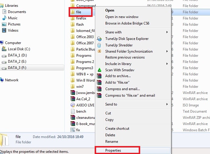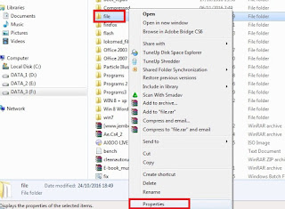 Maka Klik kanan pada nama folder tersebut (arsip saya), kemudian pilih Properties
